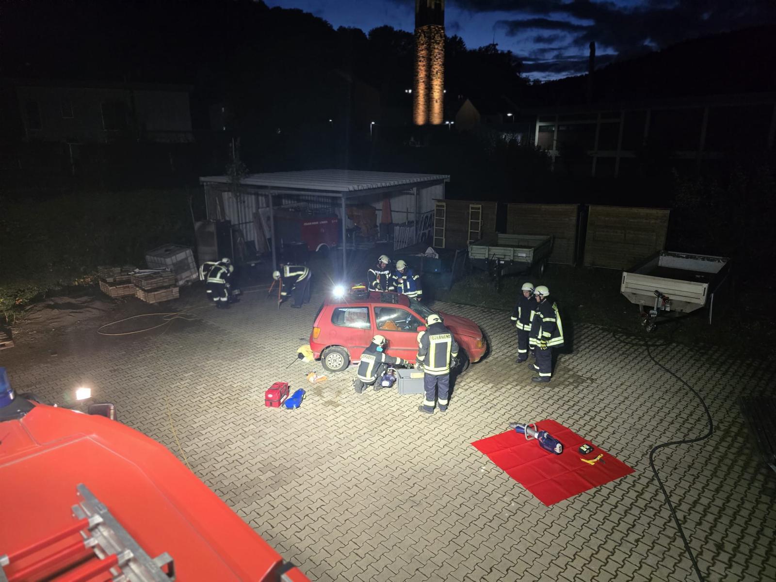 Am Montagabend führten unsere Einsatzkräfte eine realitätsnahe Übung zum Thema Verkehrsunfall in Verbindung mit einem Vegetationsbrand durch.