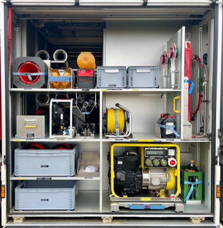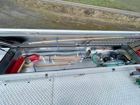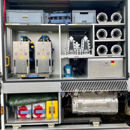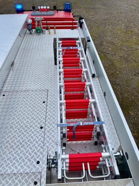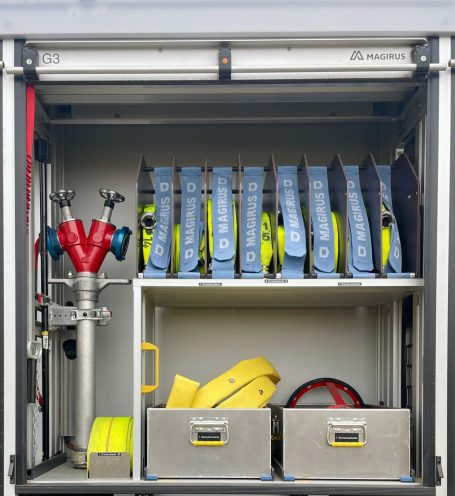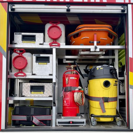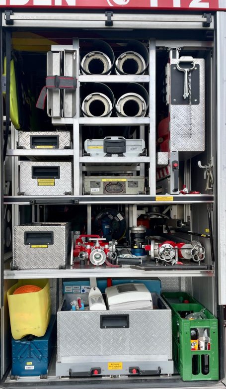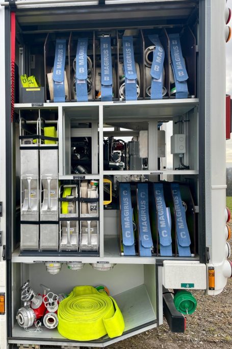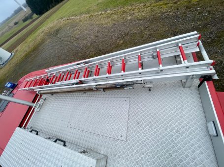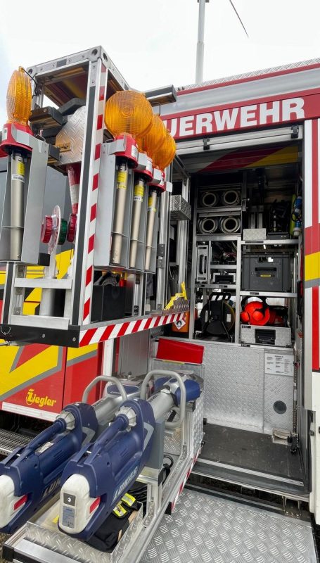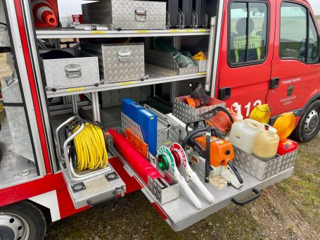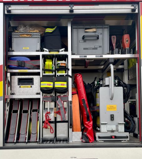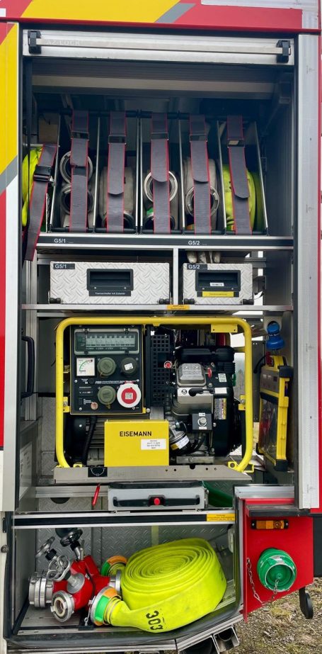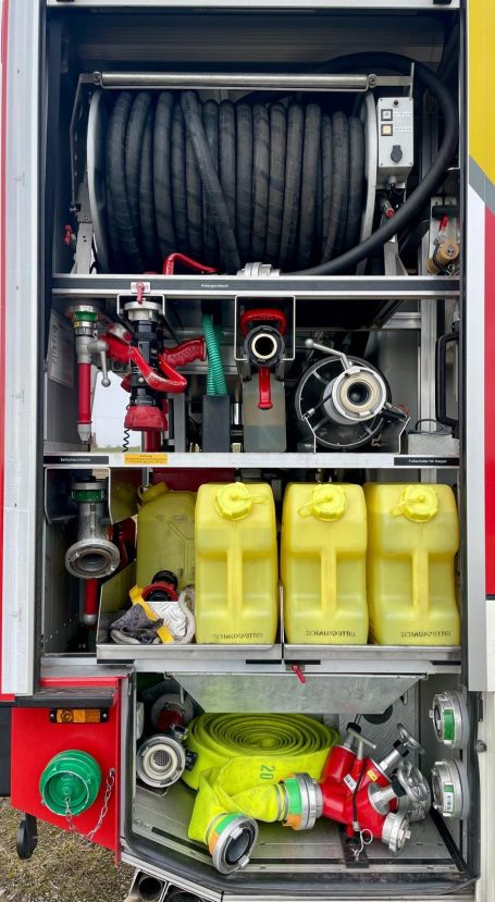 Unser „Tanker“ transportiert 3000 Liter Löschwasser und 200 Liter Schaum. Er ist speziell für den Löschangriff und den Einsatz bei Waldbränden ausgestattet. Auf der Beifahrerseite befinden sich zwei Atemschutzgeräte mit 300 Bar. Auf dem Dach ist ein Wasserwerfer verstaut, der bei Bedarf im abgesetzten Betrieb aufgebaut werden kann. Außerdem sind im Mannschaftsraum Handlampen sowie verschiedene digitale und analoge Funkgeräte untergebracht. Im Innenraum findet eine Truppbesatzung Platz.